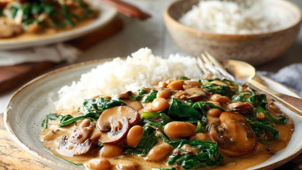 Coconut Mushroom & Spinach Curry with White Beans